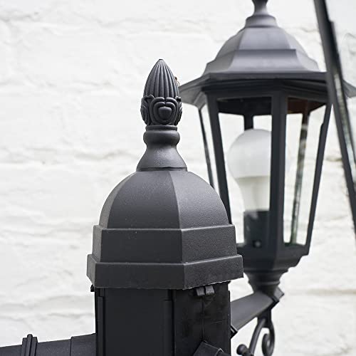 MiniSun - Lanterna da esterno tradizionale con 3 luci, un'altezza di 1,95m e classificazione IP44 fatta di resina acrilica nera satinata e nello stile vittoriano - lampada da terra esterna