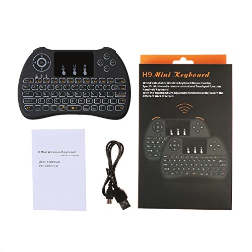 Minitastiera wireless, Ideapro 2,4 G, multimediale, portatile, palmare touchpad, tastiera retroilluminata con mouse tasto destro e sinistro per PC, Pad, Xbox 360, PS3, Google, Android, TV Box, HTPC Iptv, colore nero, H9 con retroilluminazione (layout italiano non garantito)