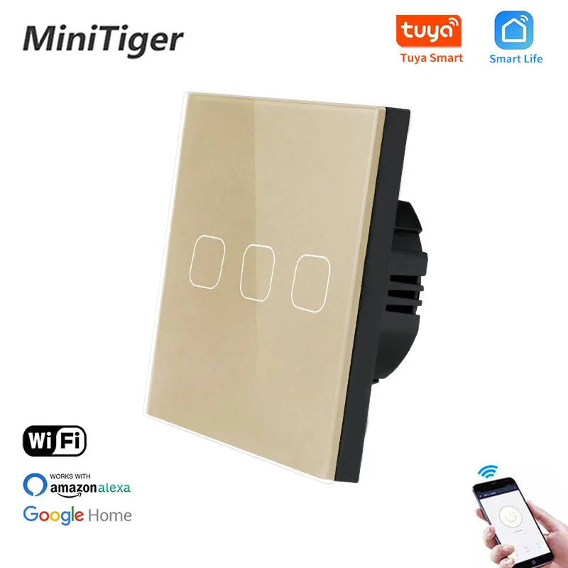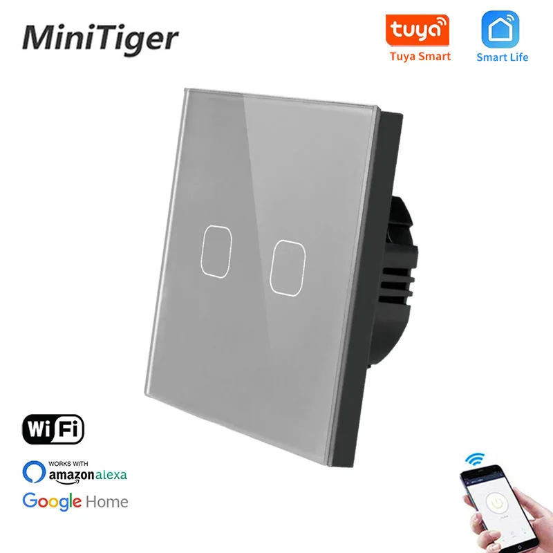 Minitiger EU Standard 1/2/3 Gang Tuya/Smart Life WiFi Light Touch Switch for Google Home Wireless Control Touch Light Switch