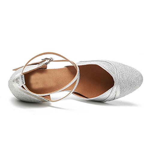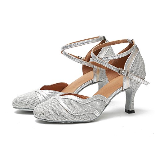 MINITOO Sala Practice Donna Cinturino alla Caviglia Argento Brillantini Salsa Latin Scarpe da Ballo Formale Partito Scarpe col Tacco EU 34