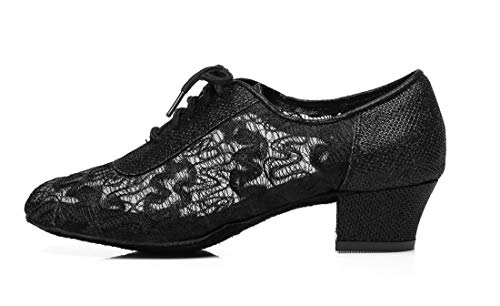 MINITOO Sala Practice Donna Tacco Basso Lacci Maglia Nero Brillantini Salsa Latin Scarpe da Ballo Partito Sera Scarpe col Tacco EU 36