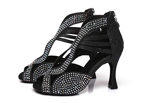 MINITOO L417 - Sandali da donna con cristalli di salsa latina con chiusura a zip e glitter, da ballo, da sposa, Nero (Nero ), 38 EU