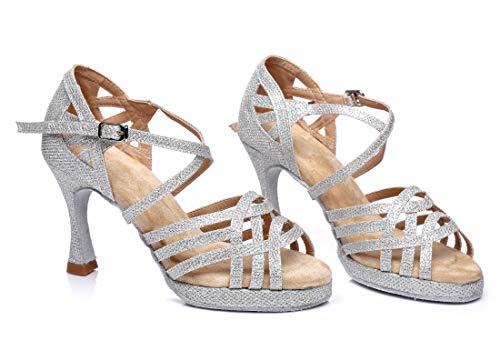 MINITOO L392 - Scarpe da ballo da donna con cinturino in salsa latina, Argento (Argento 3 55 Tacco), 34 EU