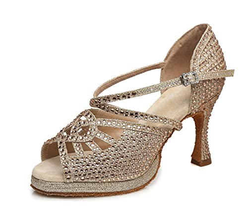 Caratteristiche: questo tacco da ballo con plateau presenta strass scintillanti impreziositi in materiale glitterato. È abbagliante sulla pista da ballo per le vostre occasioni speciali.