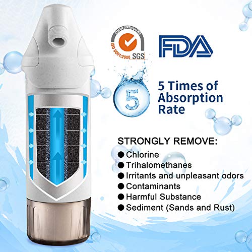 I mezzi di filtrazione ottengono il certificato FDA e hanno superato il test da parte di SGS: il filtro interno è composto da fibra di carbone attivo composita, il tasso di assorbimento della fibra di carbonio è 5 volte rispetto al carbonio tradizionale, che consente al filtro di rimuovere il 99% del cloro. Le sostanze chimiche nocive vengono assorbite sulla superficie del mezzo, quindi vengono efficacemente rimosse dall'approvvigionamento idrico.
