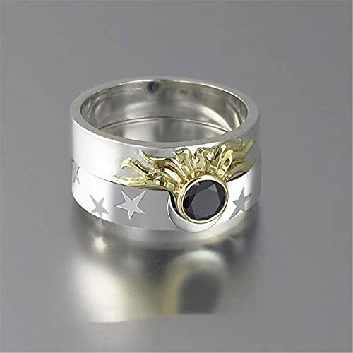 MinjiSF Anello adatto per donna e donna, con stella e luna, non sbiadisce, classico anello da donna, ideale come regalo di anniversario, per l'amicizia, per il partner