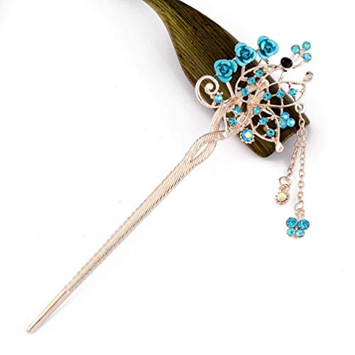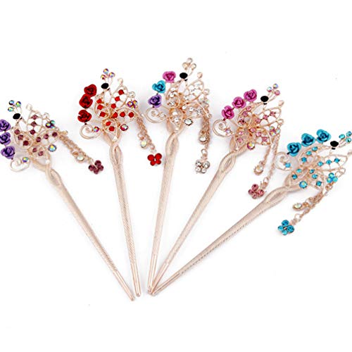 Minkissy Bastoncino per Capelli Vintage 3 Pezzi con Bacchette per Capelli Cinesi con Nappine Strass Floreali Nappine (Colore Misto)