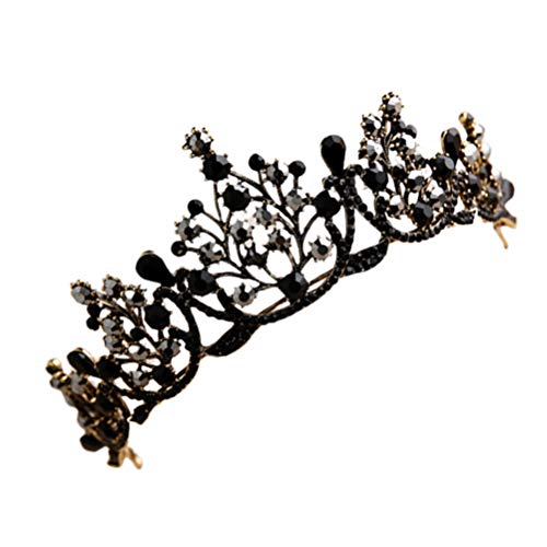 Minkissy Corona Barocco Retro Gothic Strass Principessa Corona Nero Cristallo Regina Corona per Cosplay Party Halloween