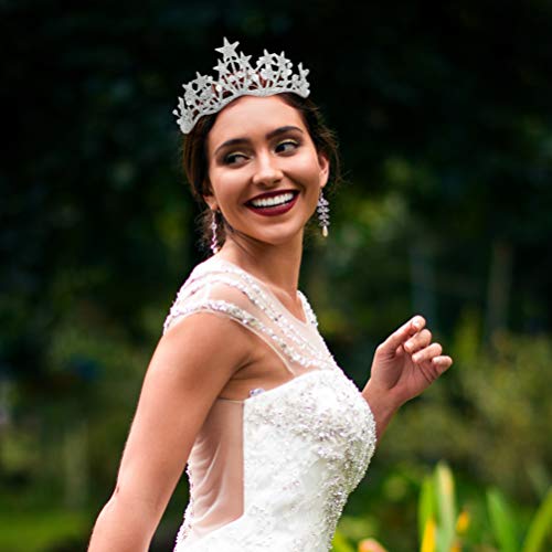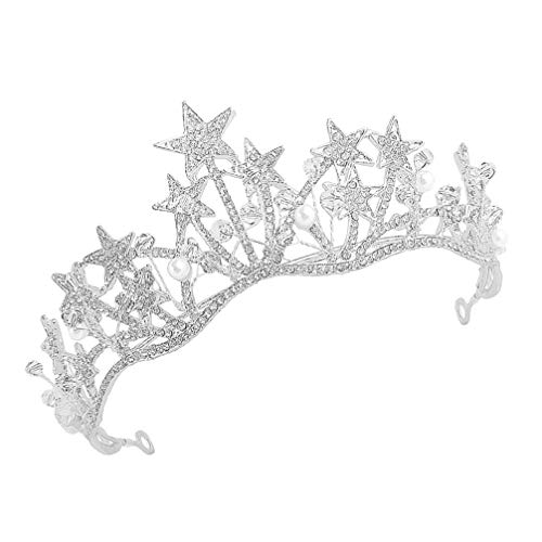 Minkissy Corona Nuziale Cosplay di Perle di Strass Crystal Stella Diadema con Perla per La Festa Nuziale () Copricapo Nuziale Accessori Fotografici
