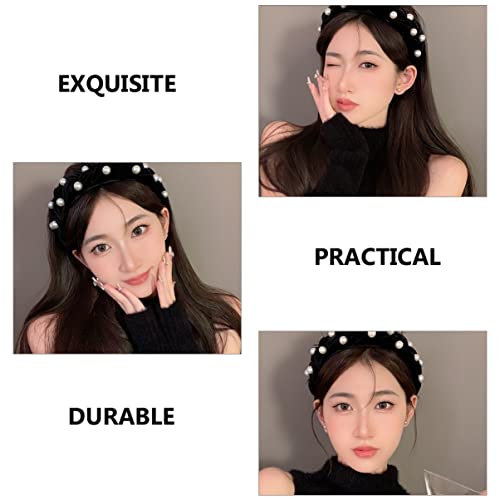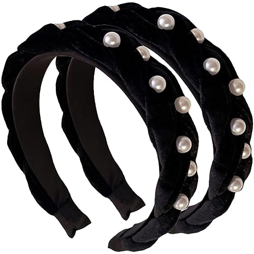 Minkissy 2 Pezzi Fascia Di Velluto Con Perle Fascia Nera Fasce Donna Fasce Della Ragazza Fasce Decorate Per Le Donne Copricapo Per Le Donne Nastri Neri Per Accessori Di Perle