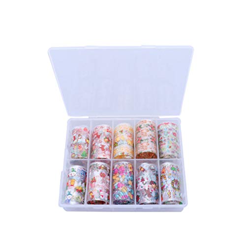 Minkissy 10 Rotoli Adesivi per Nail Art Natalizi Adesivi per trasferimento di Unghie Santa Adesivi autoadesivi con Scatola Rimovibile Adesivi per Decorazioni Natalizie per Unghie per Ragazze Donne