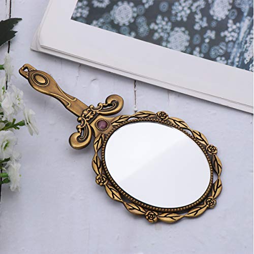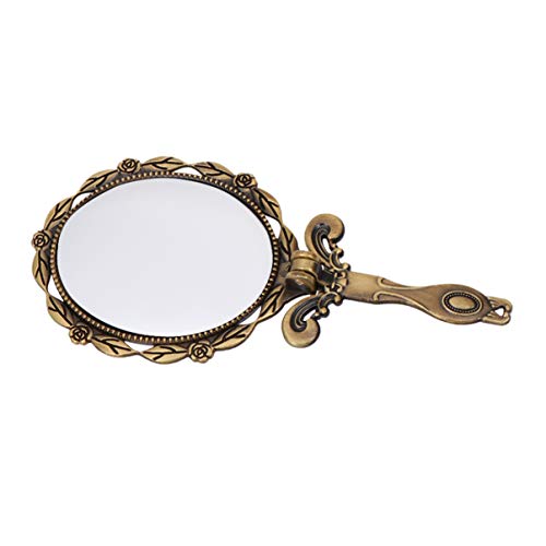 Minkissy specchio di trucco a mano vintage ovale specchio cosmetico pieghevole in metallo specchio con maniglia portatile viaggio specchio di cortesia (bronzo)