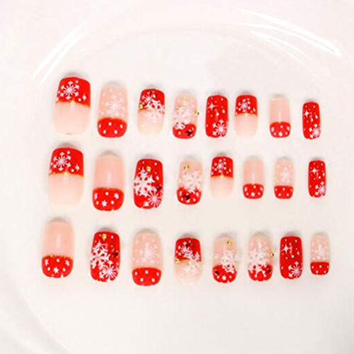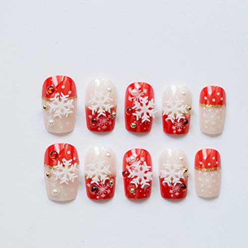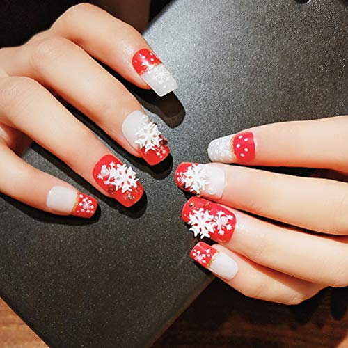 Minkissy Unghie finte 24 pezzi con fiocchi di neve bianchi design unghie finte acriliche moda natale per ragazze donne