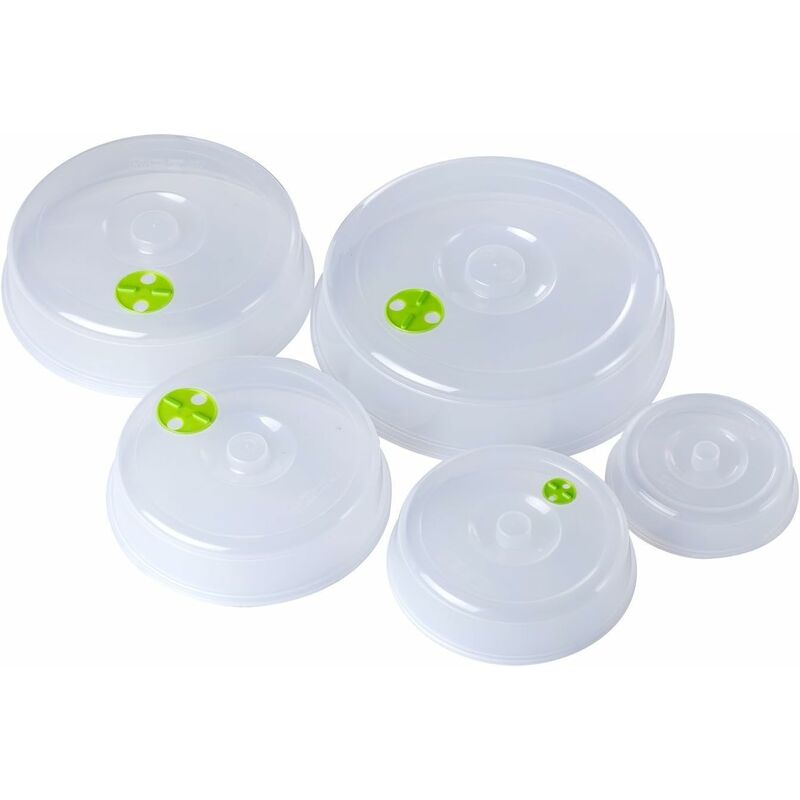 5 coperture di diverse dimensioni 11,5 / 14,5 / 17/20/23 cm Tappi di ventilazione per prevenire l'accumulo di umidità e pressione Design trasparente per vedere il cibo durante la cottura Riscalda semplicemente cibi difficili come spaghetti, salsa di pomodoro, pasta. Il coperchio è lavabile in lavastoviglie sul ripiano superiore Costruzione in plastica riutilizzabile, stabile e durevole, il nido si unisce per una conservazione salvaspazio (lavabile in lavastoviglie) Vantaggi e funzioni Vantaggi e funzioni b> - Copripiastra PREMIUM antimacchia, funziona con tutti i microonde - Trasparente - testato, 66% di energia in meno rispetto ai prodotti tradizionali - 5 bustine di diverse misure 11,5 / 14,5 / 17/20/23 cm - Completamente lavabile in lavastoviglie e facile da pulire - Mantiene igienico il tuo microonde - Serve anche come copertura per alimenti, protezione contro mosche / insetti in estate
