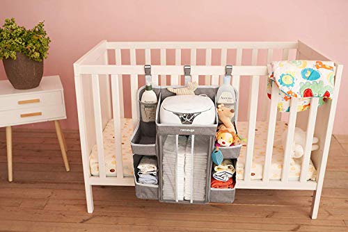 Date al vostro bambino TLC con entrambe le mani libere quando si utilizza l'organizer per pannolini da appendere alla culla o al fasciatoio. Questo versatile organizer per bambini contiene anche asciugamani, lozioni, salviette e vestiti a portata di mano, in modo da non dover mai lasciare il lato del bambino durante il cambio del pannolino.
