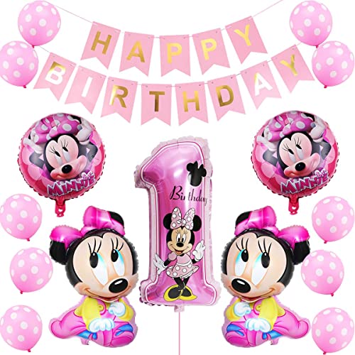 Minnie Palloncini, Forniture per Feste di Minnie 1 Anni Compleanno Decorazioni Compleanno a Tema Topolino Forniture per Feste Happy Birthday Banner Palloncini in Foil(Rosa)