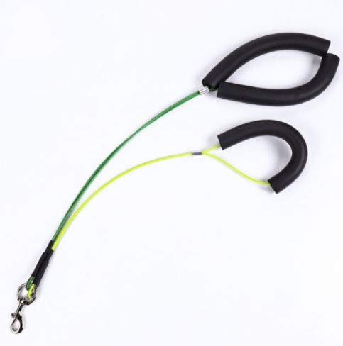 【Double Noose】 Uno per il collo e uno per i quarti posteriori. Gli scivoli di plastica mantengono i cappi sicuri. Entrambi i loops si attaccano a uno snap a catenaccio che consente un facile attacco a qualsiasi braccio di grooming.