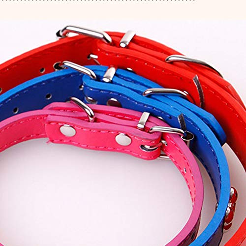 Minsa - Collare regolabile per cani e gatti, in pelle PU, lunghezza 37 cm, larghezza: 1,5 cm, portata totale: 24 - 32 cm, colore: rosso