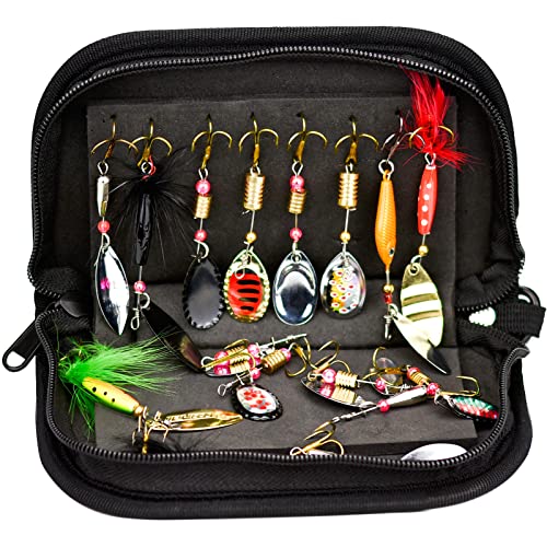 MINSHUXI Esche da Pesca Esche Artificiali Spinning Cucchiaini da Pesca Esche da Spinning Pesca con Borsa Portatile per Persico,Trota,Pesci Vari (16 Pezzi)