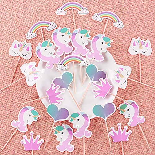 MINSHUXI 48 Pezzi Unicorno Cake Topper Arcobaleno Cuore Corona Cupcake Topper Kit Decorazione Torta Unicorno per Compleanno Matrimonio Torta Decorazioni