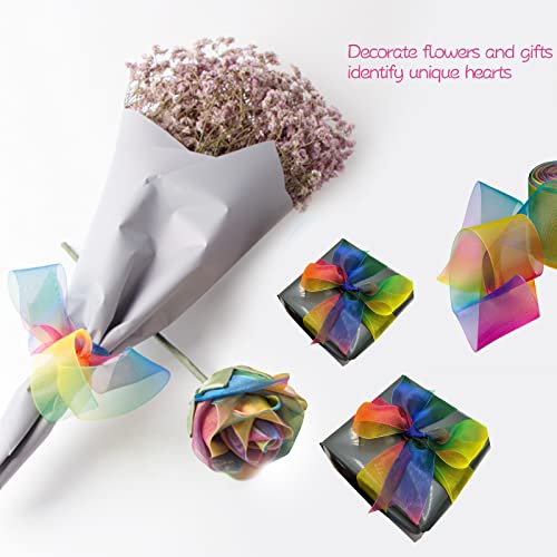 MINSHUXI 50 Yarde Nastro in Organza Arcobaleno Nastro Tulle Arcobaleno Nastri in Chiffon Organza Arcobaleno di Colori Shimmer Organza Nastri per Decorazione Regalo, Festa (2,5CM)