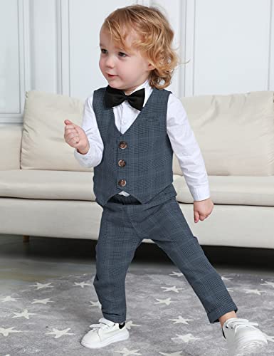 Mintgreen Vestiti Neonato Maschio, 3 Pezzi Cerimonia Abiti Sposa Abito da Battesimo Maniche Lunghe Camicia + Gilet + Pantaloni + Papillon, Marina Militare, 18-24 Mesi, 90