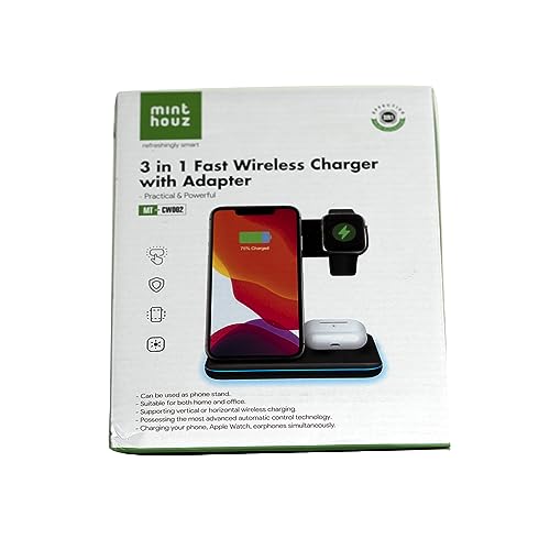 Minthouz 3 in 1 Caricatore Wireless Veloce - 18W Ricarica Wireless con Adattatore QC 3.0 - Caricabatterie Wireless Docking Station Compatibile con iWatch, AirPods, iPhone Series 14/13/12/X/8 ecc