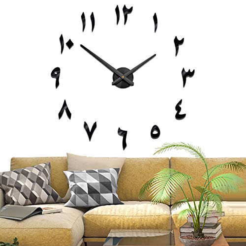Mintime Mute DIY Orologio da parete senza cornice con numeri arabi 3D specchio adesivo decorazione della casa ufficio (nero)