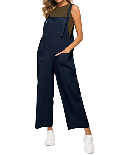 MINTLIMIT Cotone Lino Allentato Allentato Cinghia Senza Maniche Lungo Baggy Tuta Salopette Gamba Larga Pantaloni Casual