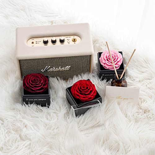 [FACILE DA CURARE]: Hai solo bisogno di mettere la scatola di gioielli rosa conservato in un luogo fresco e può durare per 3-5 anni, non c'è bisogno di irrigazione, e mantenere il fiore lontano dalla luce diretta del sole. La tua amata avrà un buon umore quando lo guarderà ogni giorno.