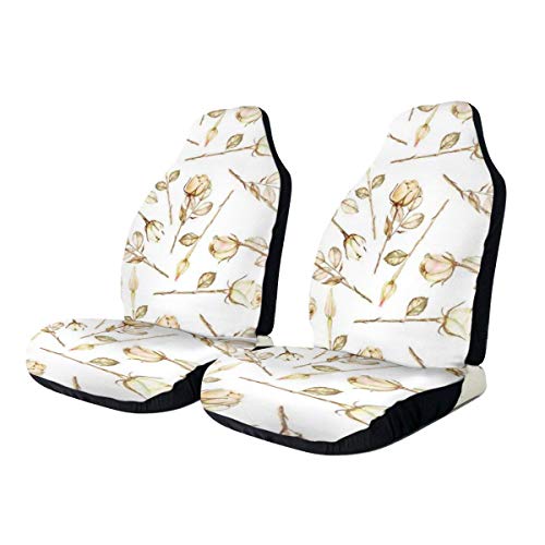 MIOMIOK Seat Covers Vehicle Protector Car Mat, Summer Theme Sepia Roses with Leaves And Branches Nature Botanical Design Art Print,Fit Most Cars, Sedan, Truck, SUV,1pcs