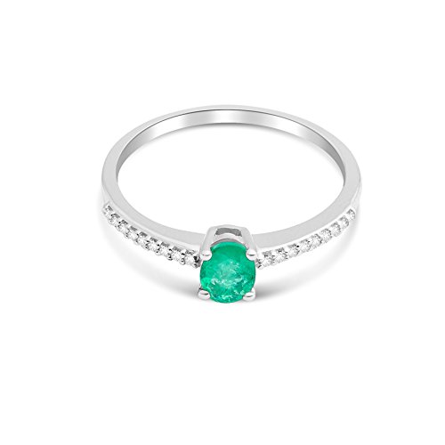 Miore Anello da Donna, Oro Bianco, 9 K (375), Smeraldo, Misura 18.5