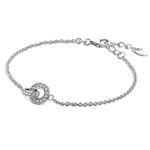 Miore Bracciale da donna in argento sterling (925) con chiusura a brillante, con zirconi, 18 + 4 cm, Argento sterling