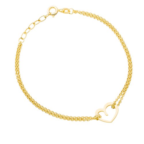 Miore Bracciale Donna con Catena, Cuore Argento Placcato Oro Giallo Argento 925 Cm 19