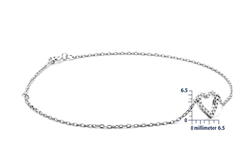Miore Bracciale Donna Cuore con Catena, Diamanti taglio Brillante ct 0.07 Oro Bianco 9 Kt / 375 cm 18