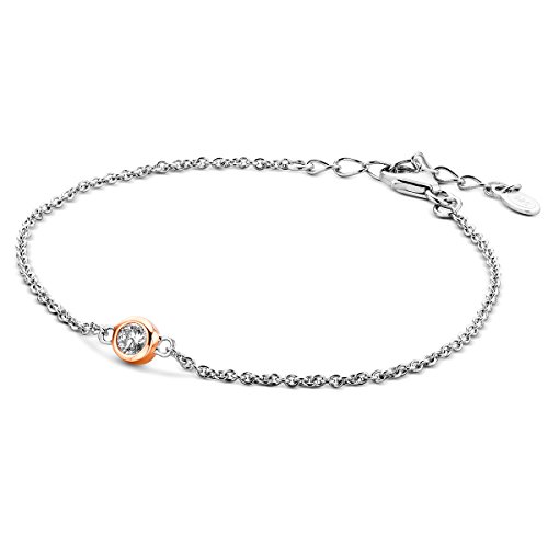 Miore Bracciale da donna placcato oro rosa bicolore in argento sterling 925 con zirconi taglio brillante, 18 + 4 cm, argento sterling