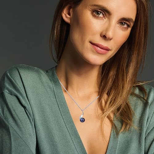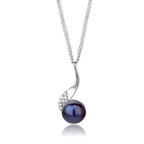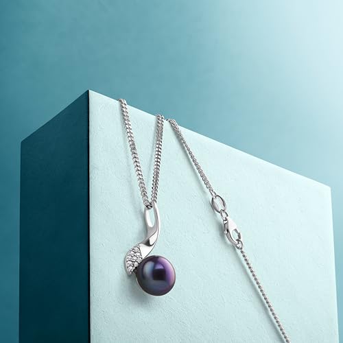 Miore Collana Donna Argento, Catena con Ciondolo di Perla Grigia Coltivata d'Acqua Dolce e Zirconi in Argento 925. Catenina Grumetta Lunga Cm 45. Pendente Donna anallergico.
