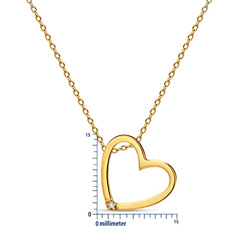 Miore - Collana da donna con ciondolo a forma di cuore in oro giallo 9 carati 375 da 0,01 ct lunghezza 45 cm