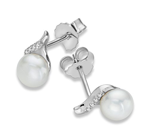 Miore Orecchini Argento Donna Piccoli a Lobo Perle di fiume Zirconi taglio brillante Argento 925
