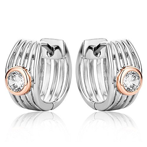Miore Orecchini a Cerchio da Donna in Argento Sterling 925 con Zirconia Cubica Rotonda, Colore Argento