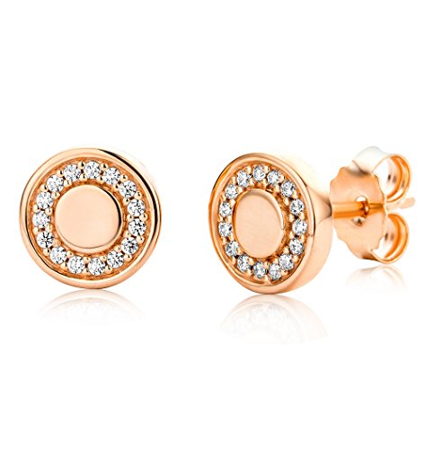 Miore Orecchini a Lobo da Donna in Argento Sterling 925 con Zirconia Cubica Rotonda, Colore Rosa