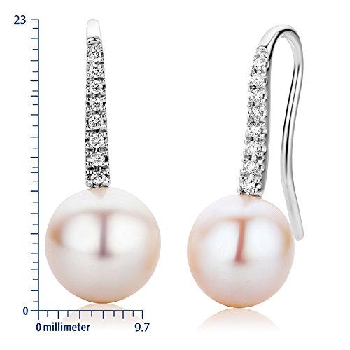 Miore Orecchini Donna Pendenti Perle di fiume Diamanti taglio Brillante ct 0.12 Oro Bianco 18 Kt / 750