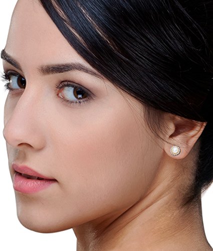 Miore Orecchini Donna Piccoli a Lobo Perle di fiume Zirconi taglio brillante Oro Bianco 9 Kt / 375