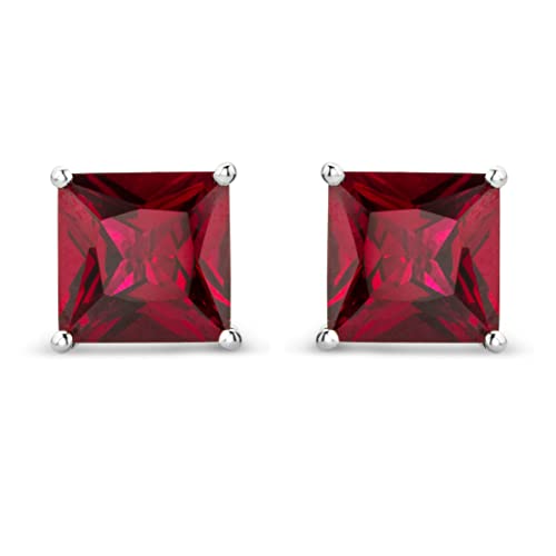 Miore orecchini da donna con rubino rosso 9 ct in oro bianco 375, dimensione 6.5 x 6.5 mm