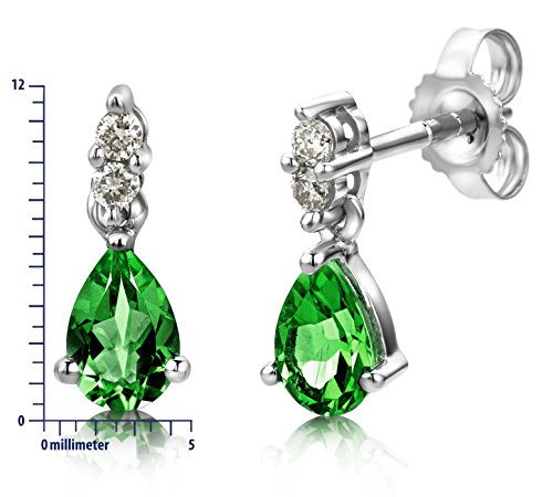 Miore orecchini pendenti 9 ct in oro bianco 375 con smeraldi verdi piriformi e diamanti brillanti 0.08 ct