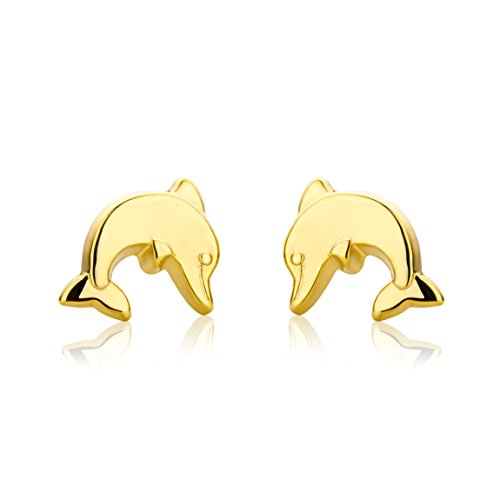 Miore Orecchino per Bambina Oro Giallo 9 Kt / 375 Piccoli a Lobo con Delfino