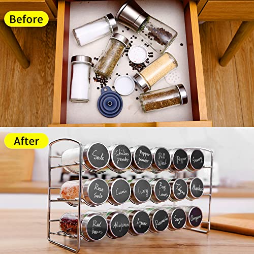【Materiali di Alta Qualità】: Il spice rack è realizzato in acciaio inossidabile di alta qualità, con elevata luminosità, robustezza, resistente alla ruggine e indeformabile. Il corpo del barattoli portaspezie è realizzato in vetro spesso e il tappo è in acciaio inossidabile di alta qualità e plastica per alimenti, non contiene BPA ed è sicuro da usare