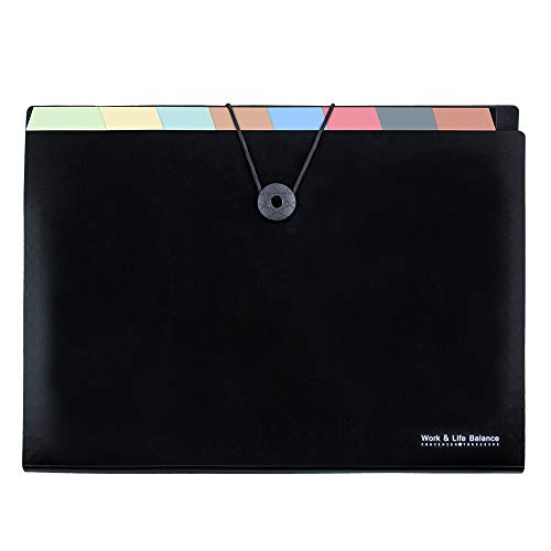 Miovatty Cartella Portadocumenti A4 8 Tasche Impermeabile Nero Espandibile Porta Documenti Con Struttura a Fisarmonica per Casa Scuola e Viaggio di Lavoro