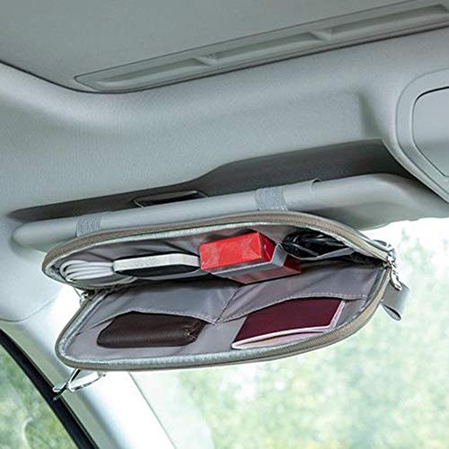 Risparmio di spazio: con grande scomparto con cerniera, tasca a rete profonda, tasche porta carte e clip per occhiali. Perfetto per riporre telefono, occhiali da sole, fili, documenti, carte, penne, cavo di ricarica, auricolari, CD e molto altro ancora. È un grande aiuto come borsa per la vostra auto.