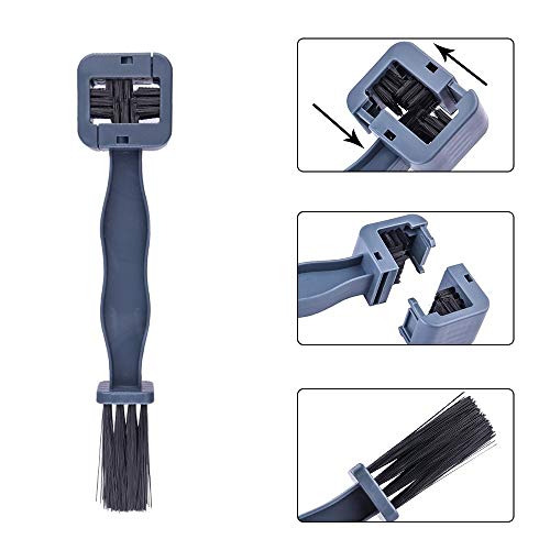 ➤Copertura completa: lo strumento per la pulizia della catena di motociclette e biciclette utilizza setole su 3 lati che consentono di pulire tutti e 4 i lati della motocicletta e della catena della bicicletta e il lato con setole lunghe consente di pulire altre parti della bicicletta come pignoni e ruote.